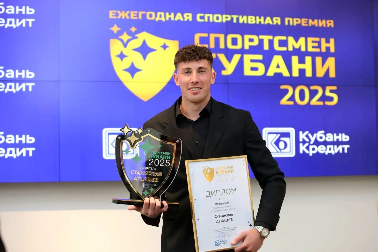 — Мы рады, что уже второй год подряд звание лучшего спортсмена края завоевывает футболист клуба «Краснодар». 2025 год стал историческим для футбола Кубани, и победа Станислава Агкацева закономерна — он один из тех, кто принес региону долгожданное чемпионство страны, - подчеркнул Максим Осадник.
