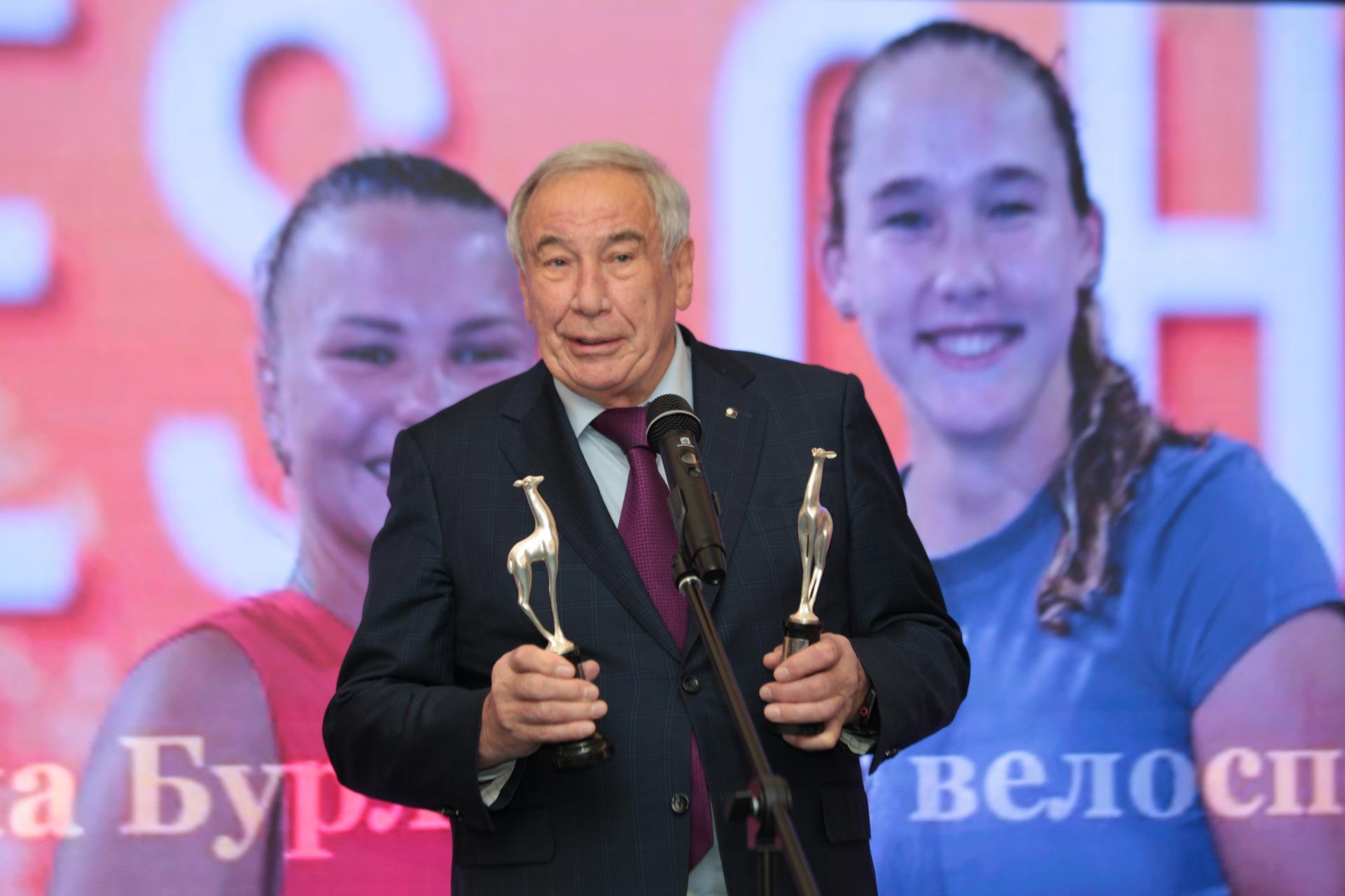 Звезда художественной гимнастики Лала Крамаренко пришла на церемонию награждения со своей мамой Ириной. «Серебряную лань» Лале вручил вице-президент ФСЖР Павел Садков.
