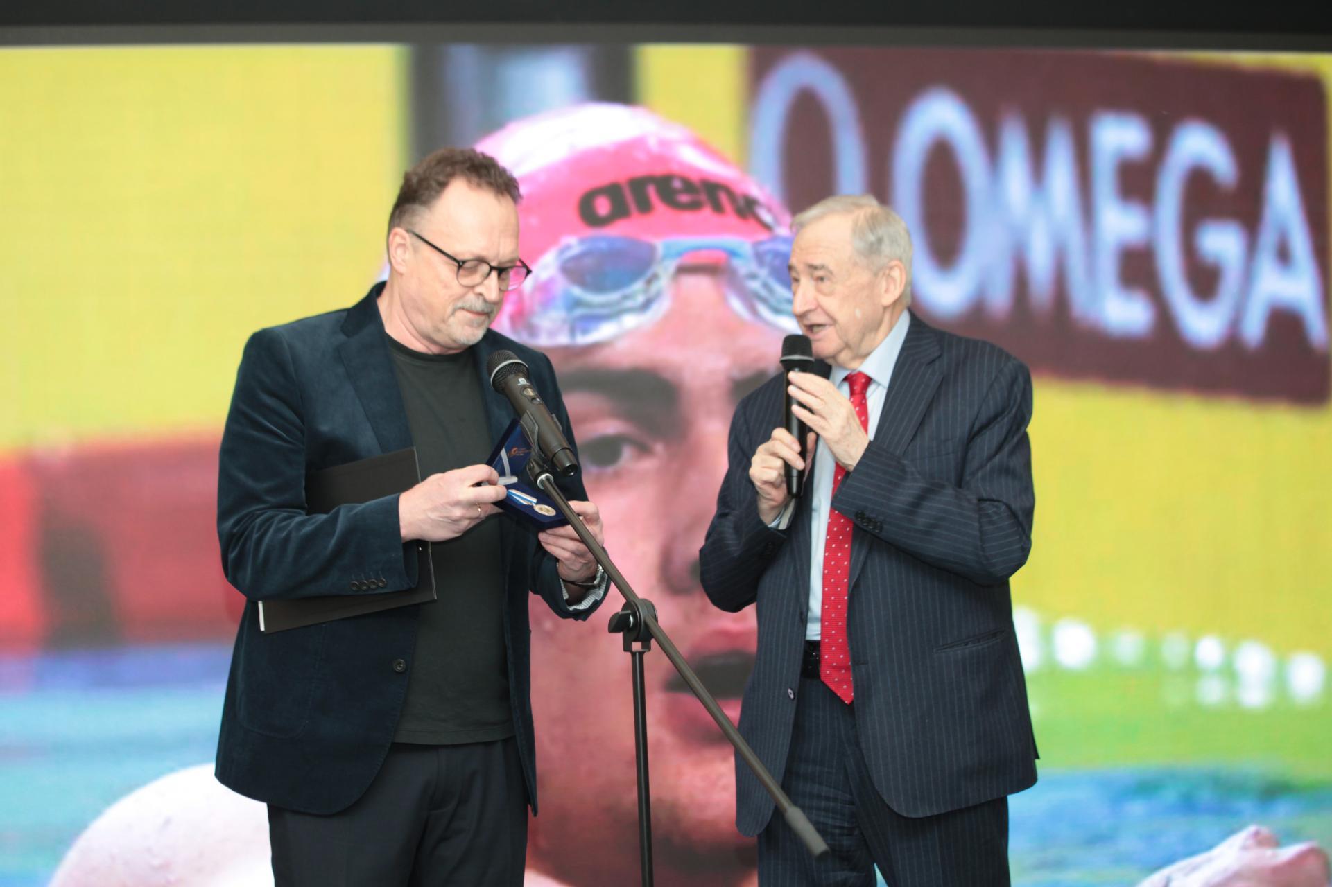 Награждал Евгению четырехкратный олимпийский чемпион, первый вице-президент Федерации водных видов спорта Владимир Сальников. Он сказал: